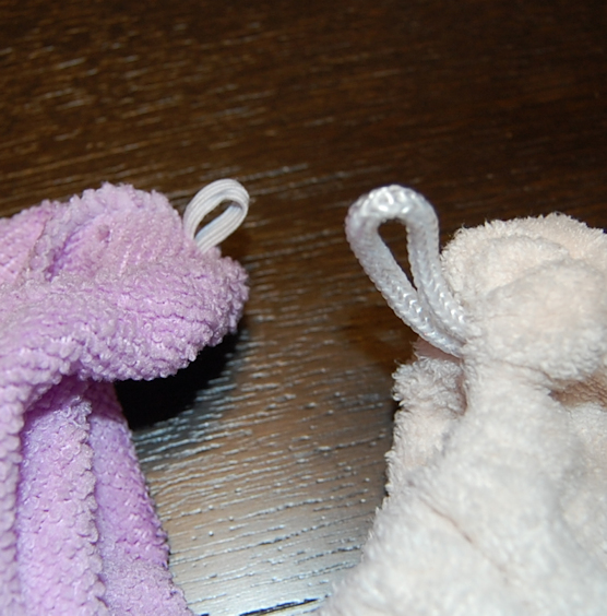 右 ニトリ 紐です。ゴムじゃないので伸びないけど大きくて 直ぐに見つけられます。